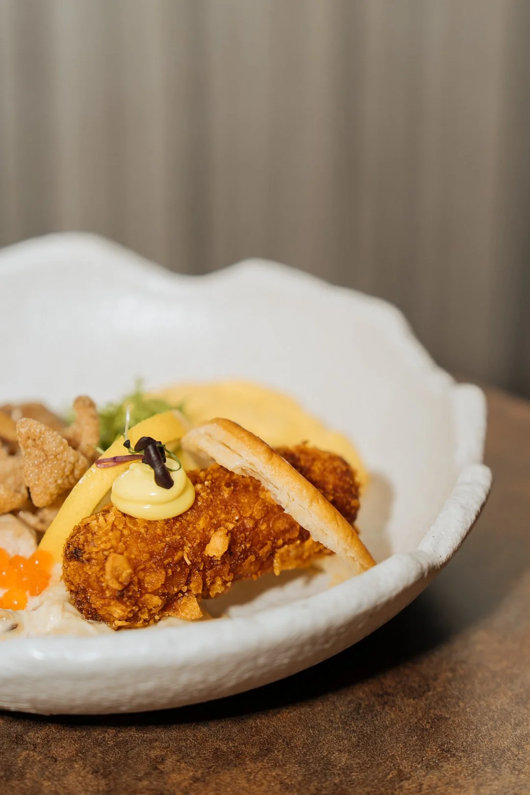 garnaal | kaas | scampi look | kabeljauw | vol-au-vent | spiced coconut | spek | kreeft | secreto | brie de meaux truffel | crispy chicken | side dishes & sausjes
